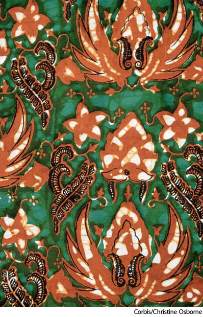 - A design that is created by this method.蜡染印花式图案:用这种方法染出的图案