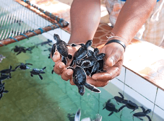 She volunteers at the hatchery because she loves sea turtles and wants to help save them from extinction.