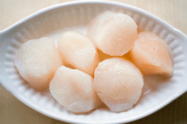 A bowl of raw scallops.