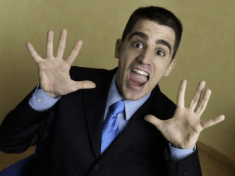 Something has scared this man.
