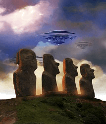 Most people are sceptics about the theory that aliens built the giant moai statues on Easter Island.