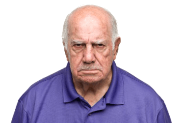 A scowling man.