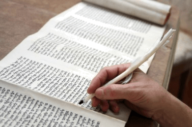 A scribe writing in a scroll.
