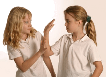 Two girls having a scuffle.