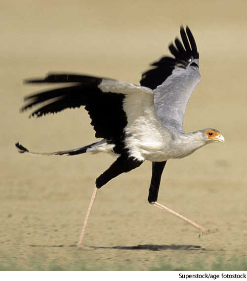 蛇鹫:一种大型的非洲猛禽(蛇鹫) ,有长腿,脑后有翎管羽冠