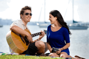 A man serenades his girlfriend.