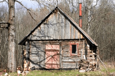 A shack in the woods.