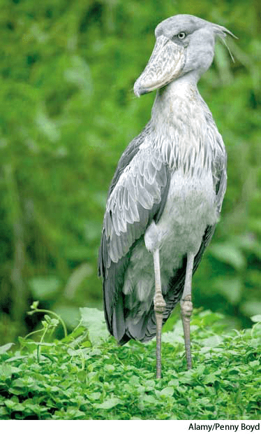 shoe·bill AHD[sho͞o′bĭl'] D.J.[ˈʃuːˌbɪl]K.K.[ˈʃuˌbɪl]n.(名词) shoebillBalaeniceps rex- A tall wading bird(Balaeniceps rex) native to swampy regions of eastern tropical Africa, having slaty plumage, long black legs, a stubby neck, and a large shoelike bill with a hook on the upper mandible. 鲸头鹳:一种产于非洲回归线地带东部的涉水鸟,(鲸头鹳) 属,羽毛为深蓝灰色,腿长而黑,脖子短粗,有一个大型鞋状喙,上颌有一个钩子