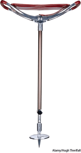 折叠座手杖:一种类似手杖的棍子,其中一端被削尖,另一端有一折叠椅子,一般为观看者观看室外体育运动时所用