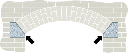 Either of two inset abutments sloped to support a segmental arch.