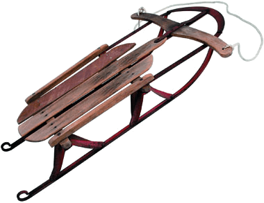 - A light wooden frame on runners, used by children for coasting over snow or ice.(小孩乘的)小雪橇:装有滑行装置的木质轻便架子,孩子们用它在冰上或雪上滑行