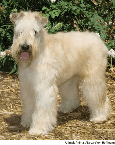 A medium-sized terrier of a breed that originated in Ireland, having a wheat-colored coat of soft, wavy hair.