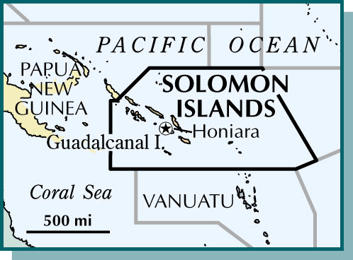 Solomon Islands 1NONE(无词性) - An island group of the western Pacific Ocean east of New Guinea. The volcanic islands, first visited by European explorers in the 1560's, were divided between Germany and Great Britain in the late 19th century. Australia assumed control of the northern islands in 1920. Today the northern Solomons are part of Papua New Guinea. The southern islands are an independent country.所罗门群岛:西太平洋中的一个群岛,位于新几内亚的东方。这是一个火山群岛,最初于16世纪60年代被欧洲的探险家涉足,在19世纪晚期由德国和大不列颠英国瓜分。1920年澳大利亚取得北部群岛的控制权。目前,北部所罗门群岛是巴布亚新几内亚的一部分。其南部群岛则为一个独立的国家