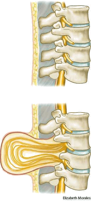 spi·na bif·i·da AHD[spī'nə bĭfʹĭ-də] D.J.[ˌspaɪnə ˈbɪfɪdə]K.K.[ˌspaɪnə ˈbɪfɪdə]n.(名词) spina bifidatop: normal spinebottom: spina bifida- A congenital defect in which the spinal column is imperfectly closed so that part of the meninges or spinal cord protrudes, often resulting in hydrocephalus and other neurological disorders. Also called schistorrhachis 脊柱裂:一种脊柱愈合不完整的先天性缺陷,以致部分脑膜及脊髓突起,经常会导致脑积水及其他神经功能紊乱 也作 schistorrhachis