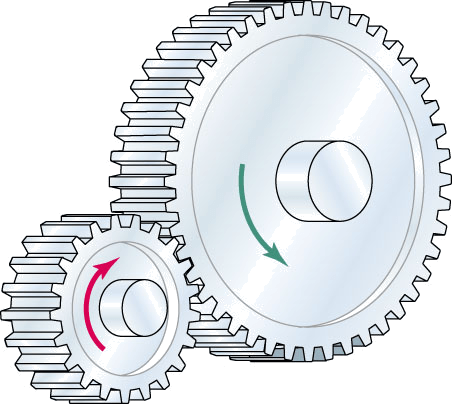 正齿轮:牙状齿按辐射形安置在与轴平行的边缘上的齿轮