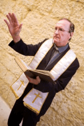 A priest offers a benediction.