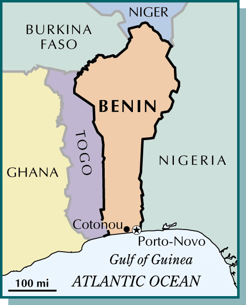 - or Formerly Da.ho.mey [də-hōʹmē, dä-ô-māʹ] A country of western Africa. Originally made up of several ancient kingdoms colonized by France, it became independent in 1960. Port-Novo is the capital and Cotonou the largest city. Population, 3,567,000. 或 原名 Da.ho.mey [də-hōʹmē, dä-ô-māʹ] 贝宁:西非一国家。原由几个古法属殖民地王国组成,1960年独立。波多诺伏是其首都,科托努为最大城市。人口3,567,000