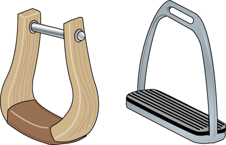 stir·rup AHD[stûrʹəp, stĭrʹ-] D.J.[ˈstɜːrəp, ˈstɪr-]K.K.[ˈstɝrəp, ˈstɪr-]n.(名词) left: Western stirrup right: English stirrupClarinda/Academy Artworks   stirruptop:stirrup on an English saddlebottom:stirrup on a western saddle- A flat-based loop or ring hung from either side of a horse's saddle to support the rider's foot in mounting and riding; a stirrup iron.马镫:从马鞍两边悬挂下来的供骑马人上下马时支撑脚用的平底套或环;马蹬