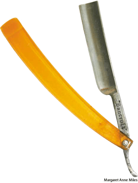 折叠式剃刀:一种刀片连在刀把上、不用时能折叠到刀把里去的剃刀
