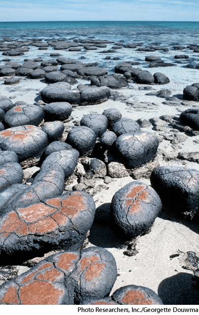 stro·mat·o·lite AHD[strō-mătʹl-īt'] D.J.[strəʊˈmætlˌaɪt]K.K.[stroˈmætļˌaɪt]n.(名词) stromatolite- A widely distributed sedimentary structure consisting of laminated carbonate or silicate rocks, produced over geologic time by the trapping, binding, or precipitating of sediment by groups of microorganisms, primarily cyanobacteria.叠层:分布广泛的叠层结构,由碳酸盐和硅酸盐的岩石叠层组成,经过地理年代由微生物群,最初为藻青菌,沉淀物的分离,结合或沉降形成