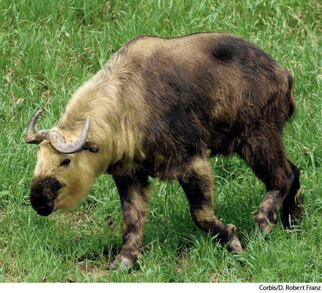 ta·kin AHD[täʹkēn'] D.J.[ˈtɑːˌkiːn]K.K.[ˈtɑˌkin]n.(名词) takinBudorcas taxicolor- A large ruminant mammal(Budorcas taxicolor) of the mountains of China, Burma, and the Himalayas, having backward-pointing horns and a shaggy coat. 扭角羚:一种产于中国和缅甸山区及喜马拉雅山脉地区的大型反刍类哺乳动物(羚羊) ,长有弯向身体后方的角和一身粗毛