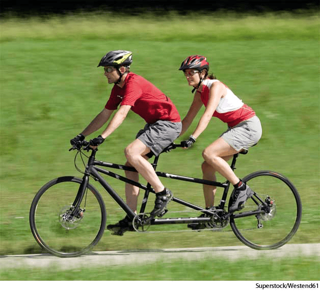 协力自行车:彼此排成纵行坐骑的两人用或多人用自行车