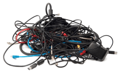 A tangle of computer cords.