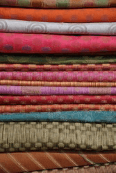 A stack of different textiles.