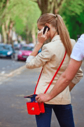 A thief steals a woman's wallet.