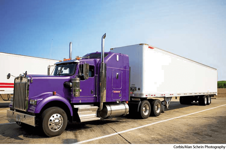 trac·tor-trail·er AHD[trăkʹtər-trāʹlər] D.J.[ˈtræktəˈtreɪlə]K.K.[ˈtræktɚˈtrelɚ]n.(名词) tractor-trailerpurple cab attached to a semitrailer- A truck consisting of a tractor attached to a semitrailer or trailer, used for transporting loads.牵引或挂车:一种卡车,由牵引车连接在半拖车或拖车上构成,用于运输货物
