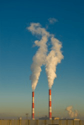 Smoke is billowing out of these factory chimneys.