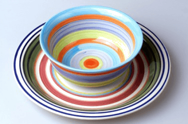 The plate is underneath the bowl.
