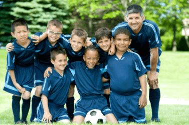 A soccer team in their uniforms.