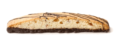 A piece of biscotti with a chocolate layer.