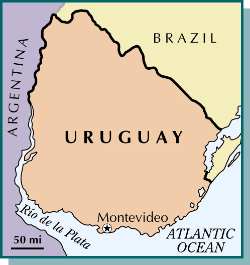 U·ru·guay AHD[y‹rʹə-gwī', -gwā', o͞o”ro͞o-gwīʹ] abbr.缩写 Urug.D.J.[ˈjʊərəˌgwaɪ, -ˌgweɪ, ˌuːruːˈgwaɪ]K.K.[ˈjʊrəˌgwaɪ, -ˌgwe, ˌuruˈgwaɪ]NONE(无词性) - A country of southeast South America on the Atlantic Ocean and the Río de la Plata. First settled in the 1600's, the region achieved its independence from Spain in 1814 and severed its union with Brazil in 1828. Montevideo is the capital and the largest city. Population, 2,788,429.乌拉圭:南美洲东南部的国家,临近大西洋和拉普拉他河,在17世纪首次有人移民。此地在1814年脱离西班牙宣布独立,并在1828年断绝与巴西的联盟。蒙得维的亚是其首都及最大城市。人口2,788,429