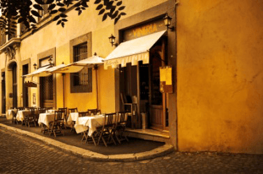 Tables outside a bistro in Rome.