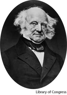 Van Bu·ren AHD[văn by‹rʹən] Martin (1782-1862) D.J.[væn ˈbjʊərən]K.K.[væn ˈbjʊrən]NONE(无词性) Martin Van Buren- The eighth President of the United States (1837-1841). A powerful Democrat from New York, he served in the U.S. Senate (1821-1828), as secretary of state (1829-1831), and as Vice President (1833-1837) under Andrew Jackson before being elected President in 1836. He unsuccessfully sought reelection in 1840 and 1848.范布伦,马丁:(1782-1862) 美国第八任总统(1837-1841年)来自纽约的强有力的民主党人,历任美国参议员(1821-1828年),国务卿(1829-1831年)和安德鲁·杰克逊(1833-1837年)任期内的副总统,并于1836年被选为总统。曾于1840年和1848年相继试图再次当选,但都没能成功