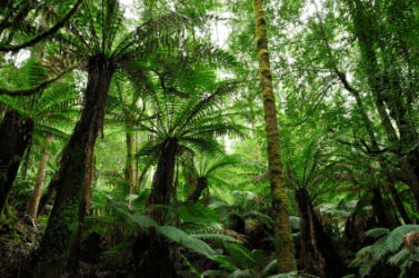 The lush vegetation of a rainforest.