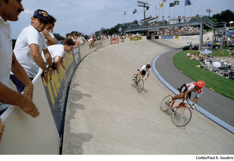 ve·lo·drome AHD[vēʹlə-drōm', vĕlʹə-] D.J.[ˈviːləˌdrəʊm, ˈvelə-]K.K.[ˈviləˌdrom, ˈvɛlə-]n.(名词) velodromeTrexlertown, Pennsylvania- A sports arena with a banked oval track for bicycle and motorcycle racing.室内赛车场:供脚踏车或摩托车比赛用的椭圆跑道