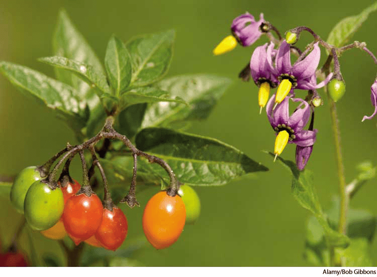 bittersweet nightshaden.(名词) bittersweet nightshadefruit (left) and flowers (right) of the bittersweet nightshadeSolanum dulcamara- A poisonous climbing or trailing plant(Solanum dulcamara) native to Eurasia and a widespread weed in North America, having violet flowers with recurved corolla lobes and red berries. Also called bittersweet ,deadly nightshade 龙葵,茄属植物:一种有毒的攀缘或蔓生植物(欧毛英 茄属) ,原产于欧亚,广阔分布于北美的一种野草,有紫色花朵,后弯花冠裂片和红色浆果 也作 bittersweet,deadly nightshade