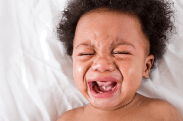 An upset baby wails.
