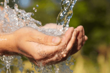 Water makes this woman's hands wet.