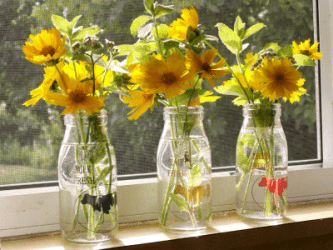 Flowers on the windowsill.