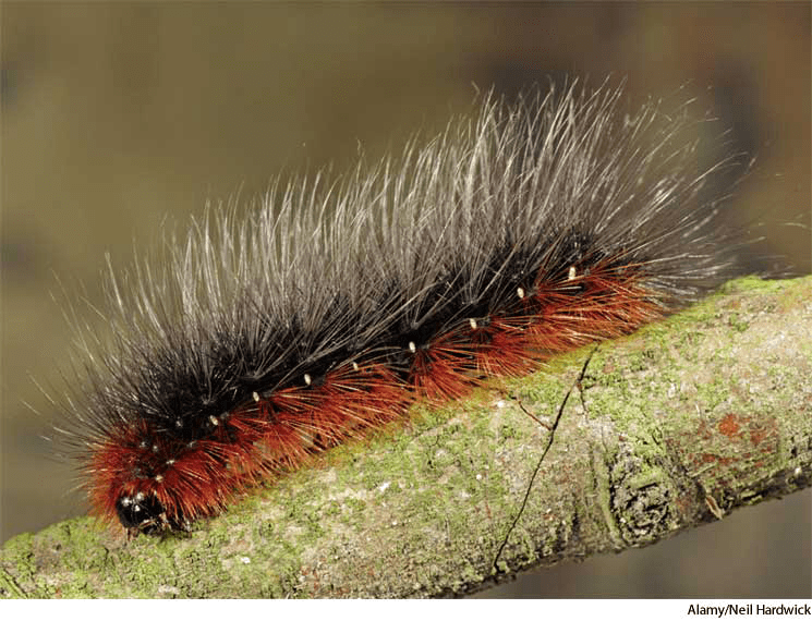 woolly bearn.(名词) woolly beargarden tiger moth caterpillarArctia caja- The hairy caterpillar of any of various moths, especially that of the North American tiger mothIsia isabella, having a reddish-brown middle stripe and black at either end. 灯蛾毛虫:一种蛾的毛状的毛虫,尤指北美的伊沙贝拉蛾属 的灯蛾,有褐红色的居中的条纹,两末端呈黑色