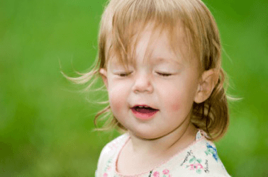 A little girl blinks.