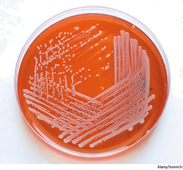 methicillin-resistant Staphylococcus aureus (MRSA) growing in blood agar