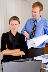 This woman is annoyed by her bossy co-worker.