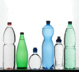 Bottles of different sizes and shapes.
