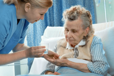 A nurse administers medicine to her patient.
