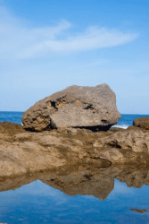 A boulder beside a tide pool.